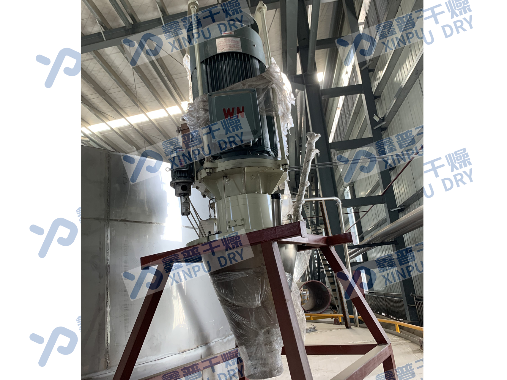 ◎干燥室采用镜面不锈钢板材,焊缝处理采用氩气保护焊接, 焊接面做高精度镜面抛光处理(内表面光洁度 Ra ≤ 0.8),确保工作面光滑平整,无清洗死角,具有优良的耐腐蚀性能。同时, 干燥塔设有快开式清洗口,便于拆装、清洗,完全符合电池材料生产规范要求。严格计算出雾化器雾化角度,并将干燥室直径做合理的放大,以防止物料在预干燥过程中发生粘壁现象;调整 了干燥室下料锥体的锥度,夹角调整至 50°并设置气动振打器 , 充分考虑物料在下料时的顺畅。