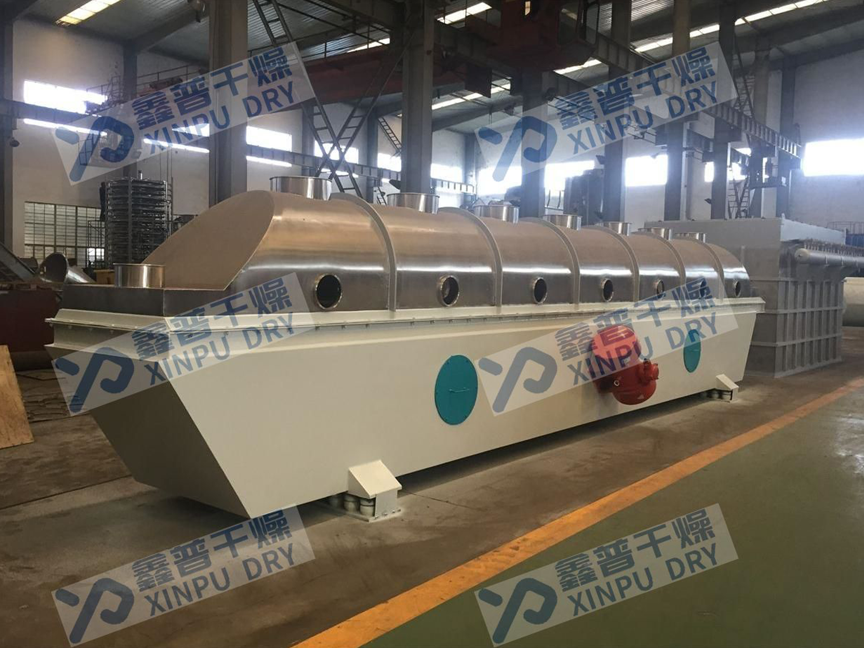 物料自进料进口进入机内,在激振力作用下,物料沿水平面流化床抛掷,向前连续运动,热风向上穿过流化床同湿物料换热后,湿空气经旋风分离器分离,布袋除尘器除尘后由排风排空.大部分干燥产品由主机出料口排出,少量粉状物料从旋风分离器排出。